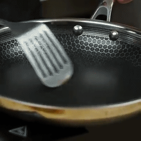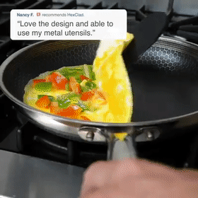 - The only true hybrid (stainless steel + non-stick) cookware featuring a patented laser-etched hexagon design and tri-ply construction.